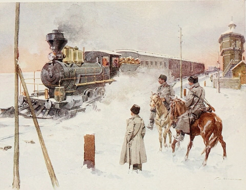 Фрагменты знаменитого акварельного полотна П.Я. Пясецкого «Великий сибирский путь.
